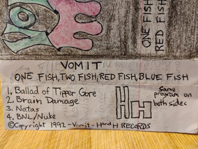 Nate’s mom walked in the room while we were listening to our tape at his house for the first time, and Nate asked her what she thought. Without hesitation, she responded “sounds like some kinda mental illness,” which we thought was awesome, and so we decided to name our band Mental Illness. Around this same time, I was reading Metal Maniacs magazine every chance I got, and they had been writing a lot about this scary new thing called “death metal,” which was really only “scary” in the sense that I was scared of everything, and “new” in the sense that I lived in the middle of nowhere, and the news was finally just getting to me. While I was scared of it, I was also fascinated by these bands with names like Carcass and Napalm Death and Cannibal Corpse and Entombed and Pungent Stench, and I eventually talked Nate into changing our name to Vomit, which I thought sounded much cooler and more death-metal.