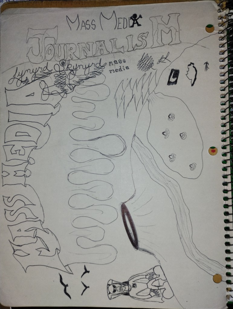 The odd thing about my desire to lean into more of a death metal aesthetic is that I hadn’t even listened to any of those bands at that point, I just thought their names were cool. Aside from its existence as a concept, death metal played no part in the music we made. In fact, music played pretty much no part in the music we made. I suppose it’s possible that we made an experimental noise masterpiece, but I’m not familiar enough with the noise genre to know for sure.