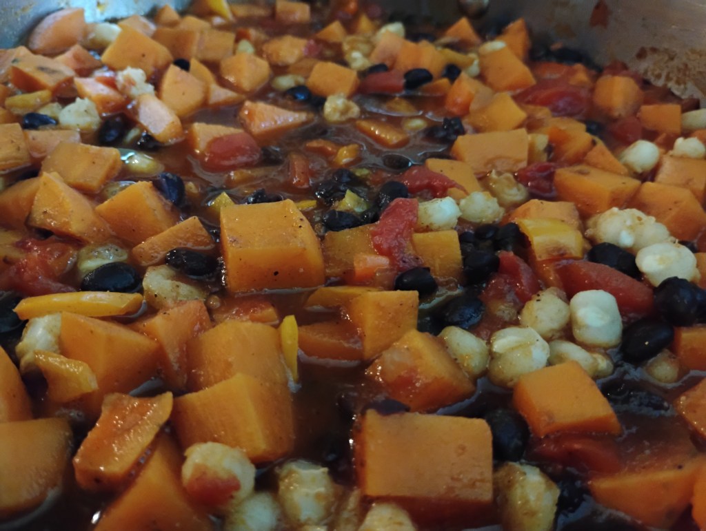 Here’s an example of what your Black Bean Sweet Potato Thing might look like by the time your rice and/or quinoa is and/or are ready to eat: