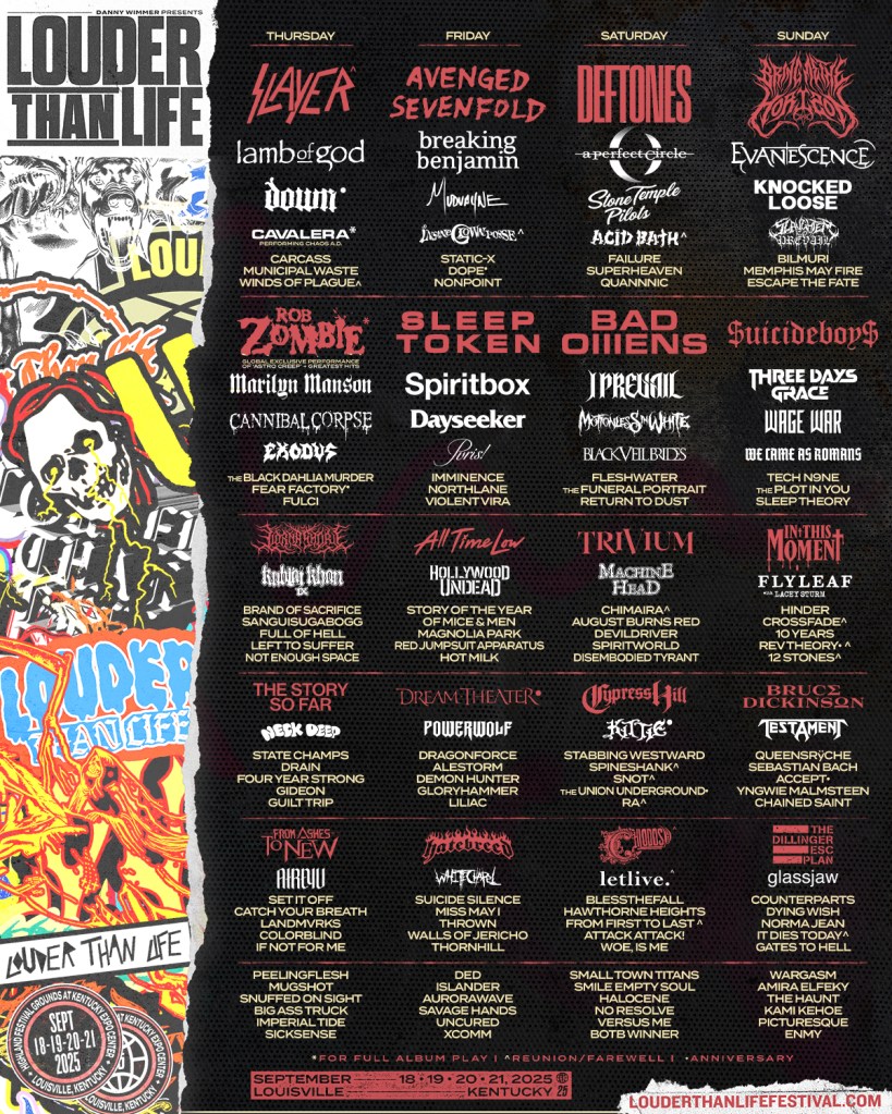 Long-time readers of my nonsense may recall that I wrote back in early December that if Acid Bath got announced for Louder Than Life 2025, I would “shit everyone’s pants”, and if you look toward the top of Day Three there, you’ll see that come September 20th, I’ve got some defecatin to do. I’m gonna lose my mind when they play “Graveflower” and “Pagan Love Song”.