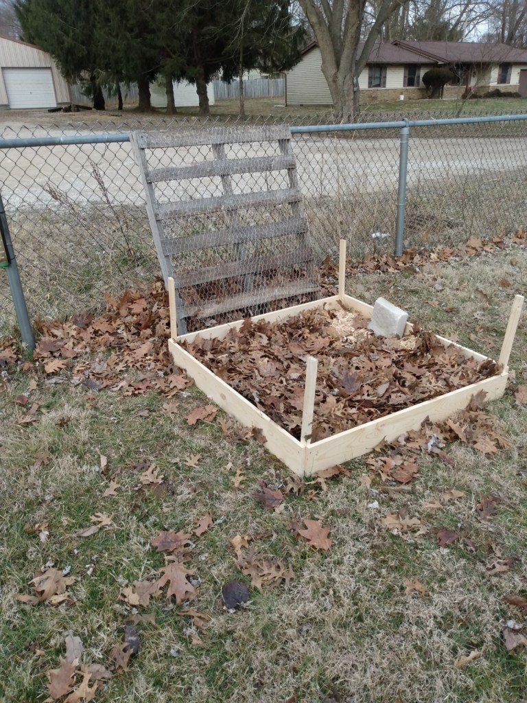 Our neighborhood is lousy with wildlife (seriously, it’s like a friggin Disney movie sometimes), especially deer, so I nailed chicken wire to an old pallet and leaned it against the fence to help minimize potential deer access from one side. It serves a dual purpose, though, as I can grow some kind of climber up it, i.e., zucchini, because that shit’s delicious.